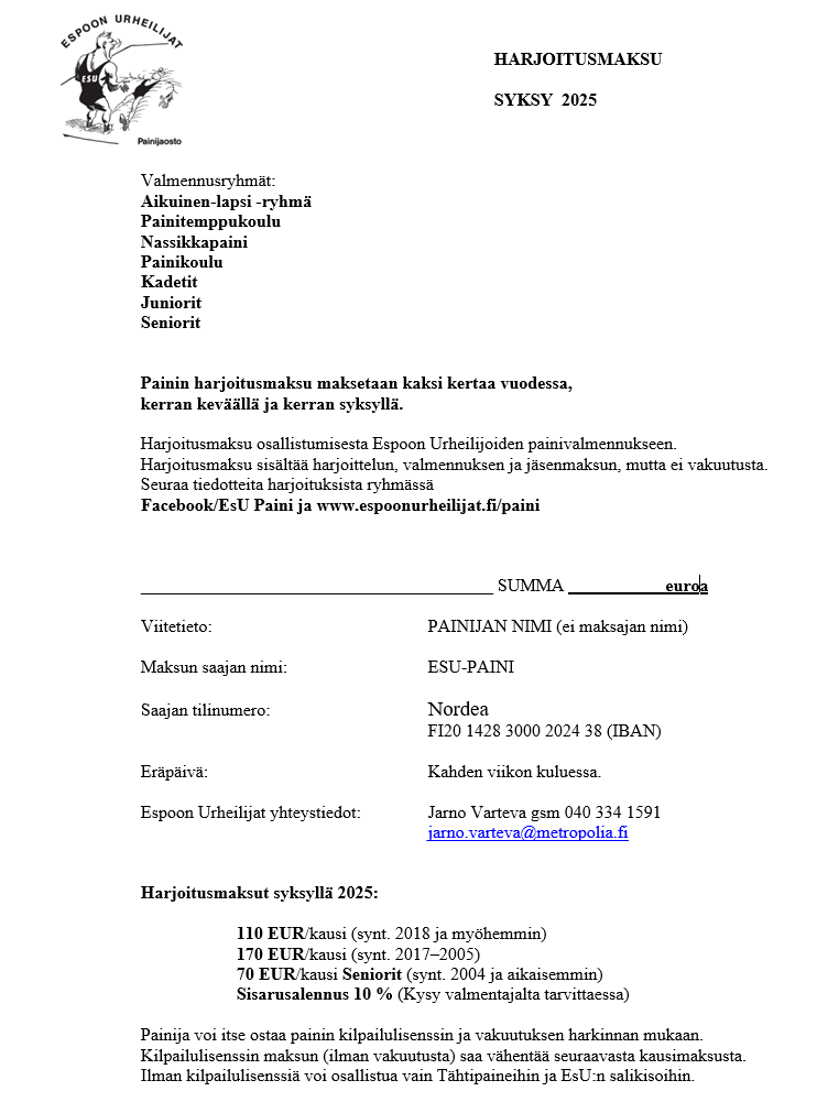 Aktiivinen ja kehittyvä urheiluseura on olemassa harrastajien takia. Moneen muuhun urheiluun nähden vapaaehtoistyötä tai ylimääräisiä kustannuksia on erittäin vähän. Alkuun riittää, että tuot lapsesi harrastukseen. Espoon Urheilijoiden painisali sijaitsee Tapiolassa, joten harjoitusten aikana voit hoitaa arkiasioita käymällä vaikka ruokakaupassa. Vanhempien ei tarvitse istua seuraamassa harjoituksia, mikäli lapsi pärjää siellä itsenäisesti. Toinen suosittu tapa lasten treenien aikana on huolehtia omasta fyysisestä hyvinvoinnista. Moni vanhempi käy esimerkiksi samassa liikuntahallissa olevalla kuntosalilla